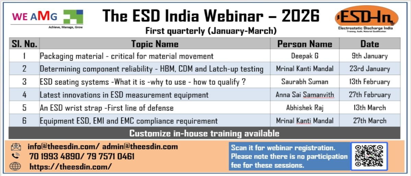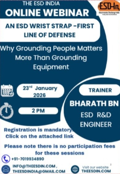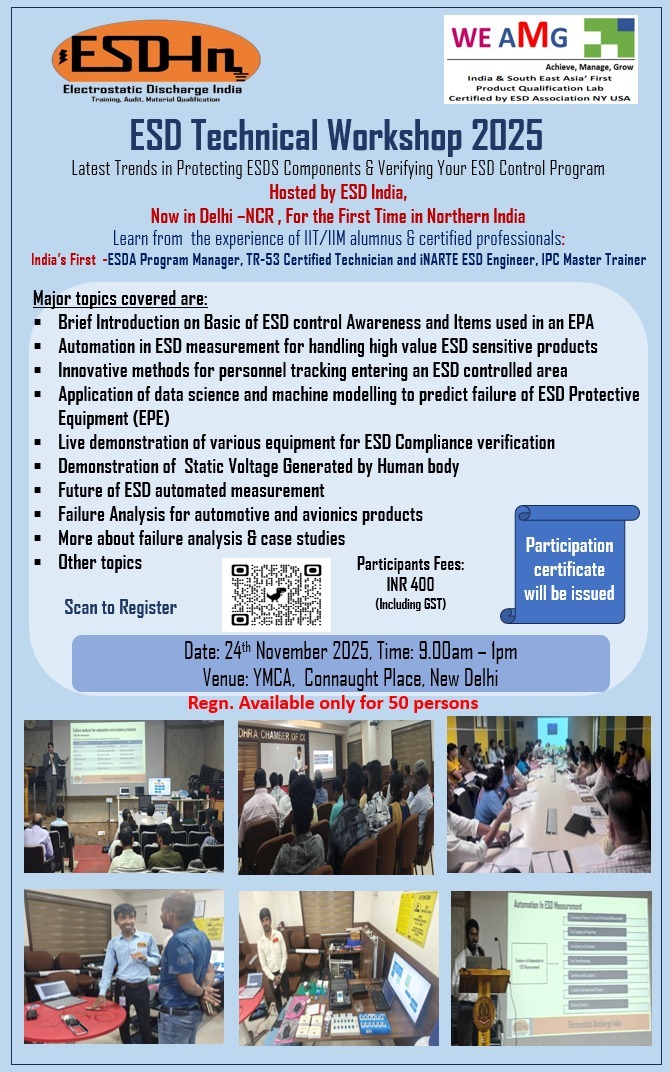 ESD India is the only independent research oriented team in India providing training, audit services, consulting for ESD Immunity by Design and ESD Control requirement.